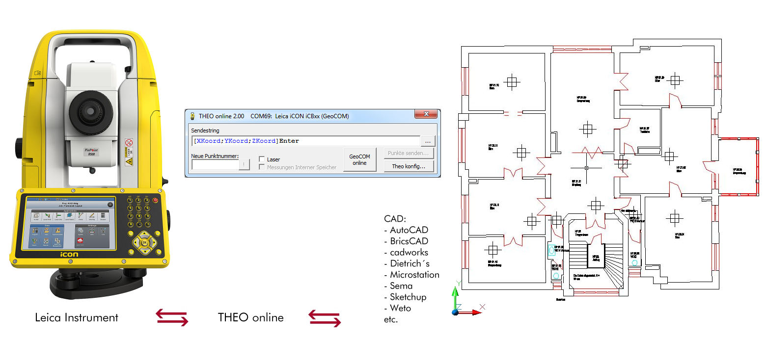 THEO Online Version 1 wird freigeben. Mit dieser sehr abgespeckten Version von ELTheo können Messungen von bestimmten Theodoliten in jedes beliebige Programm übertragen werden.