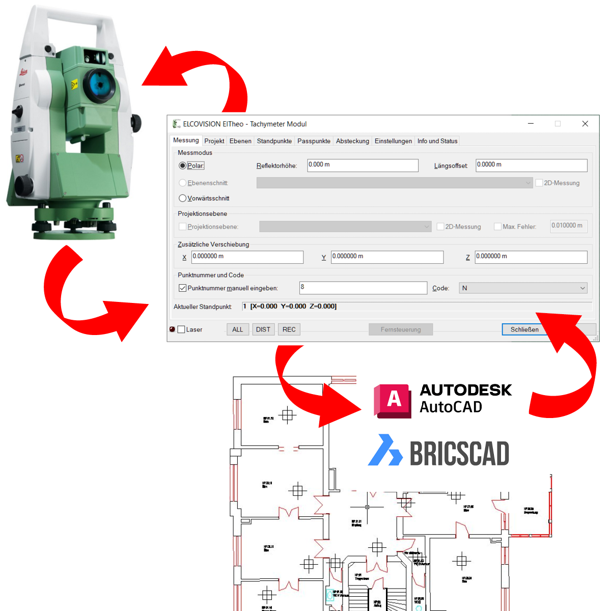 - Verbesserte freie Stationierung: Messpunkte können direkt aus CAD übernommen werden.